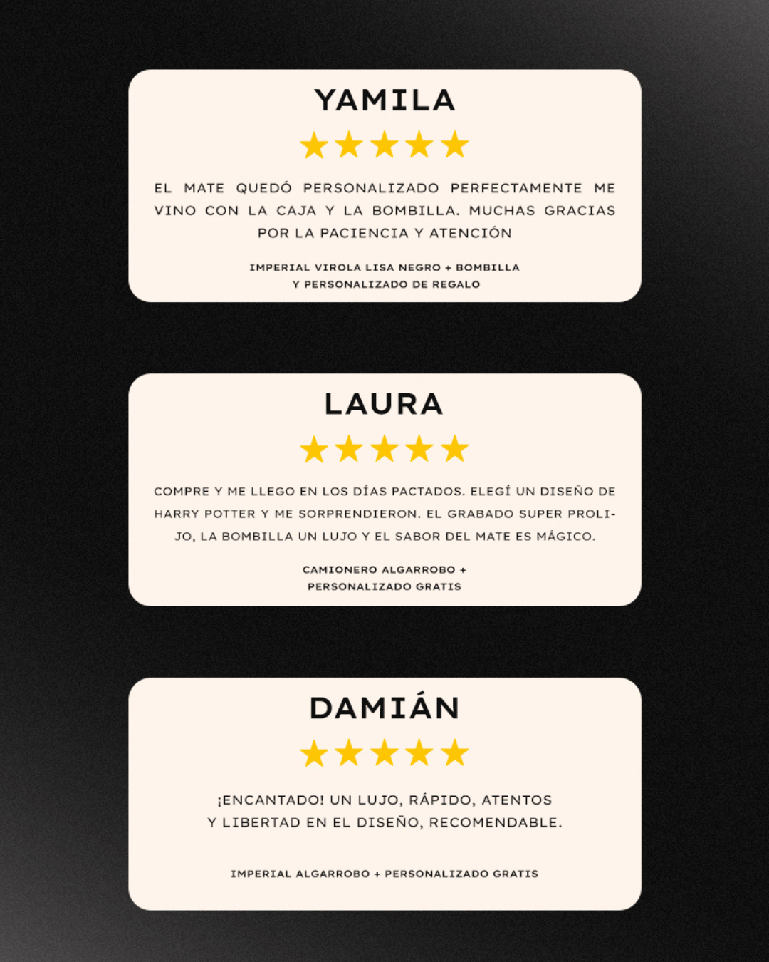 Cada uno de nuestros mates es artesanal y está hecho a mano, lo que significa que no existen dos exactamente iguales. Los colores y formas pueden variar, y eso es justamente lo que los hace especiales.